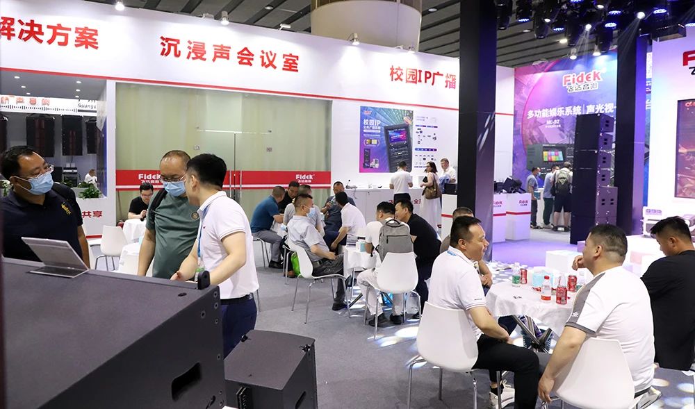 The booth was very popular, and there was an endless stream of customers who came to know about it, or to discuss cooperation, or to watch the experience, which can be described as very lively! First Audio exhibitors received warm reception and detailed explanations. At the same time, with the on-site display of the overall sound and light solutions and immersive conference system experience, it can be said that "zero distance" feels the impact of new technologies!